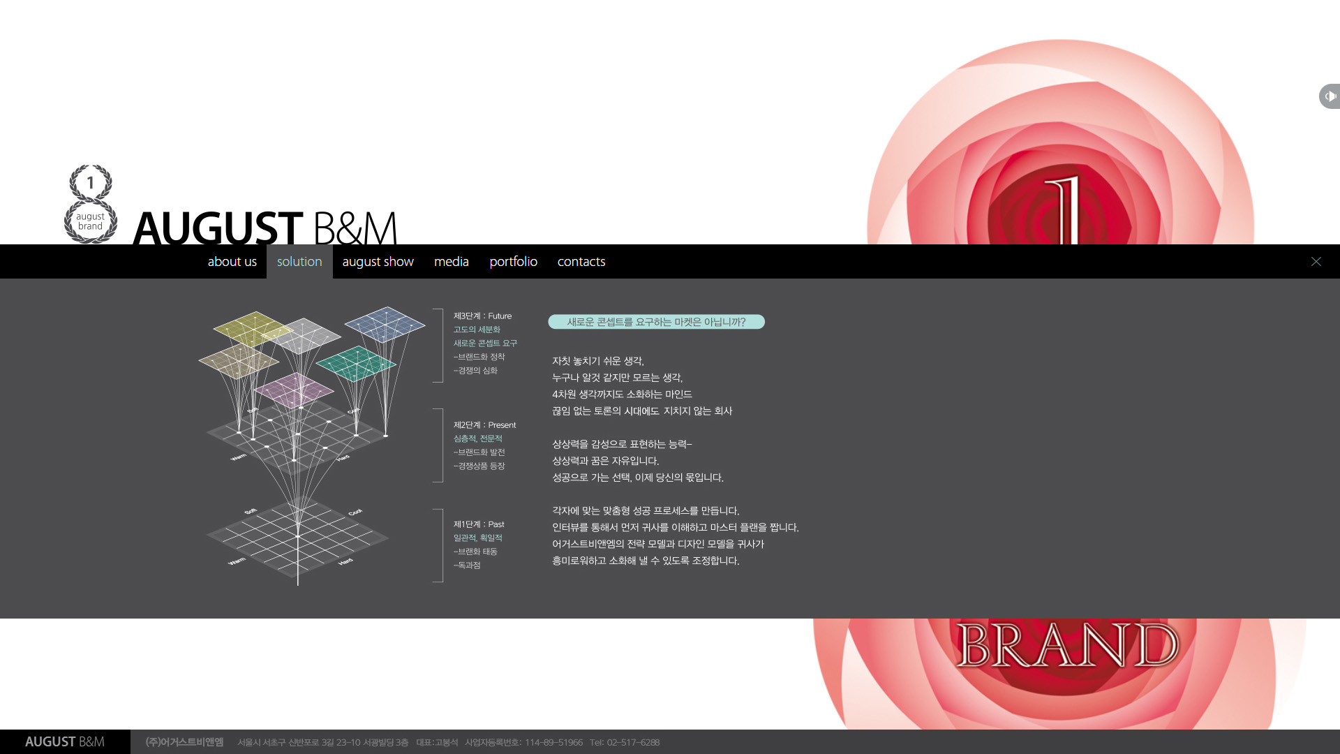 AUGUST B&M 기업은 CI, BI, PACKAGE, DESIGN을 전공으로 고객의 요구와 브랜드의 정체성을 고려하여 로고, 컬러, 폰트 등을 설계하고 대중에게 알리는 고객의 브랜드 아이덴티티를 강화했습니다.