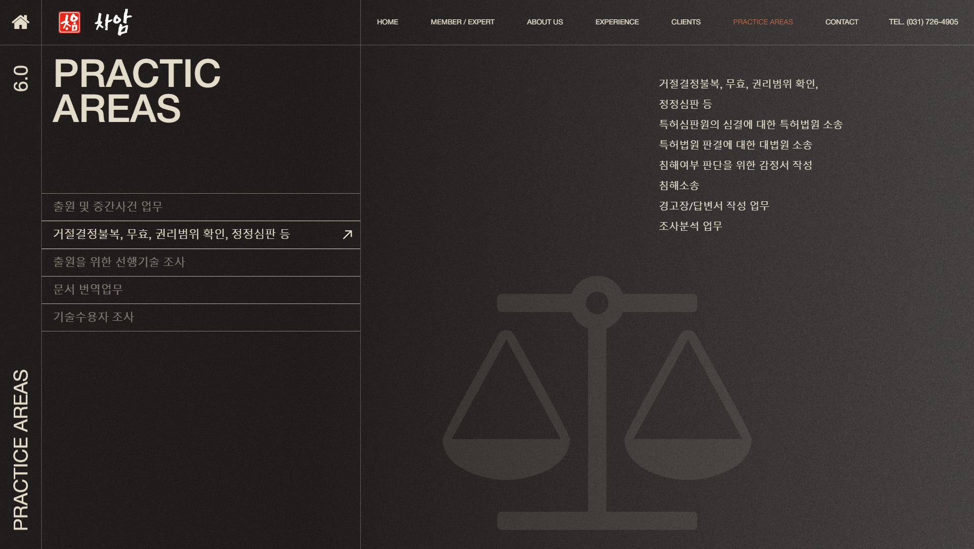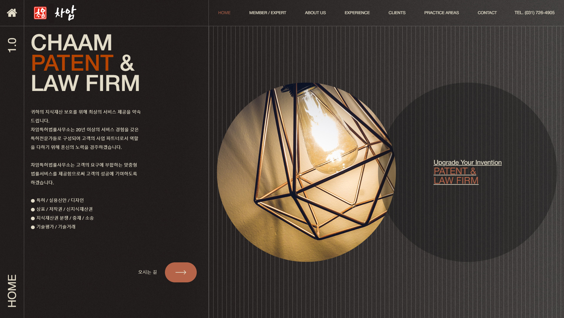 차암특허법률사무소는 전문성과 신뢰성을 반영하여 색상과 글꼴, 깔끔한 레이아웃을 활용으로 신뢰성을 전달하기 쉽게 설계하였습니다.
